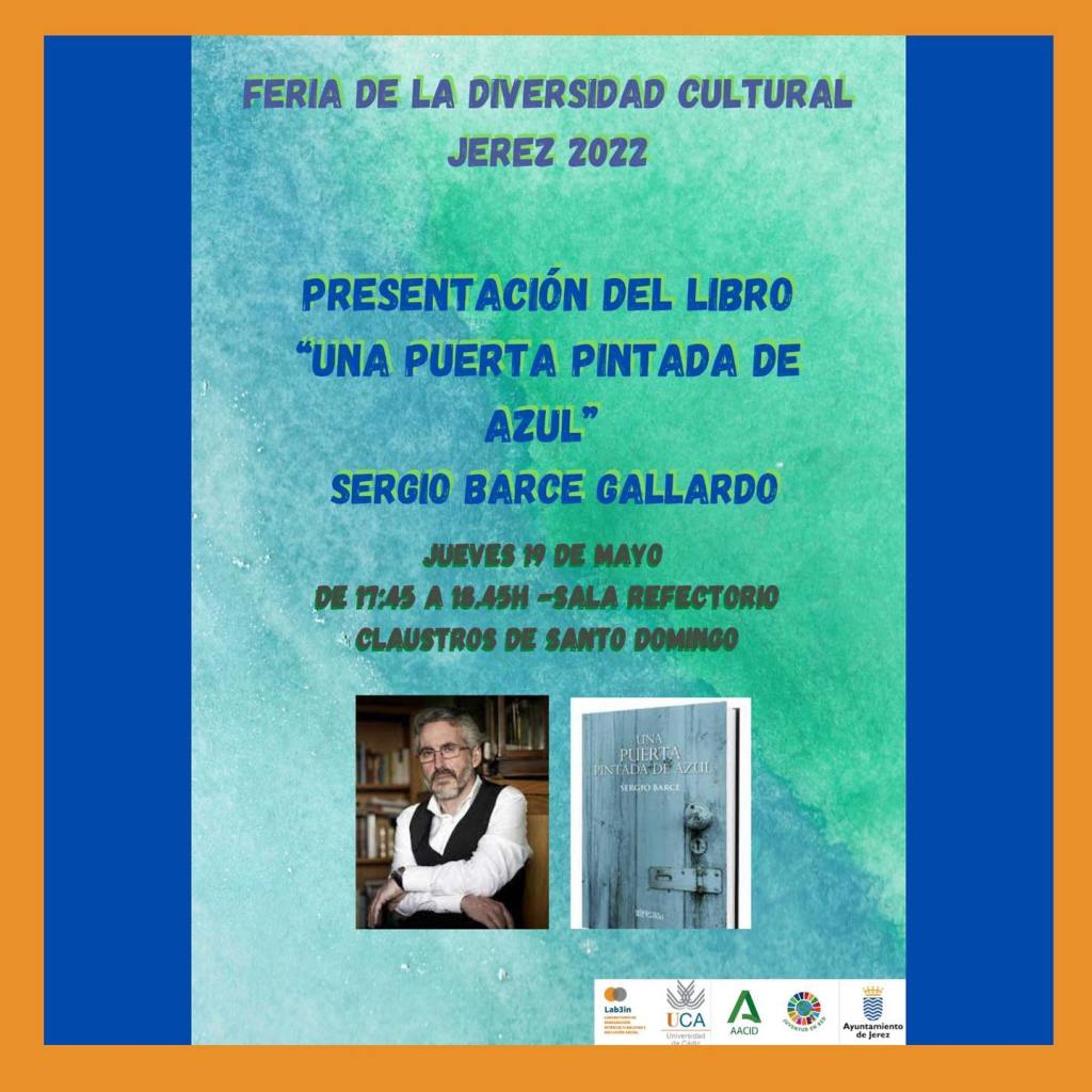 Mi libro de relatos Una puerta pintada de azul, sigue su andadura. La próxima parada en Jerez de la Frontera (Cádiz), el 19 de mayo, a partir de las 17:45 horas en el Claustro de Santo Domingo, dentro de los actos de la Feria de la Diversidad Cultural que organiza el Laboratorio de Inmigración, Interculturalidad e Inclusión Social, de la Universidad de Cádiz, en colaboración con el Ayuntamiento de Jerez.